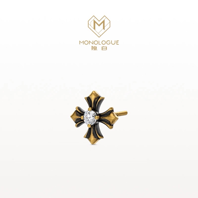 周大福独白欧罗巴狂想复古黄金十字钻石耳钉单