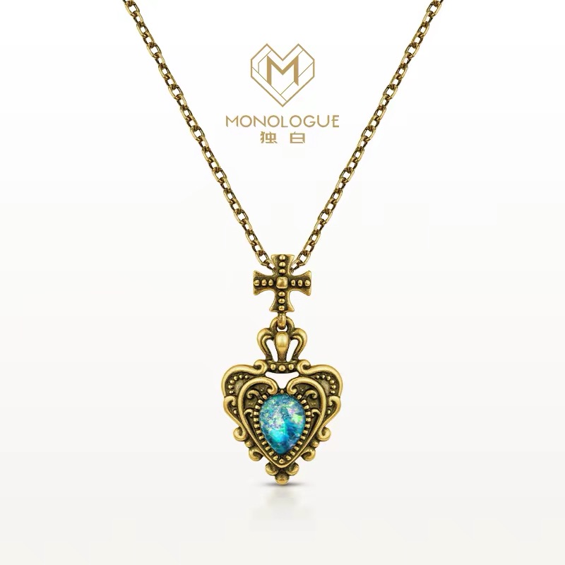 周大福独白亚特兰蒂斯复古黄金爱心欧泊皇冠吊坠