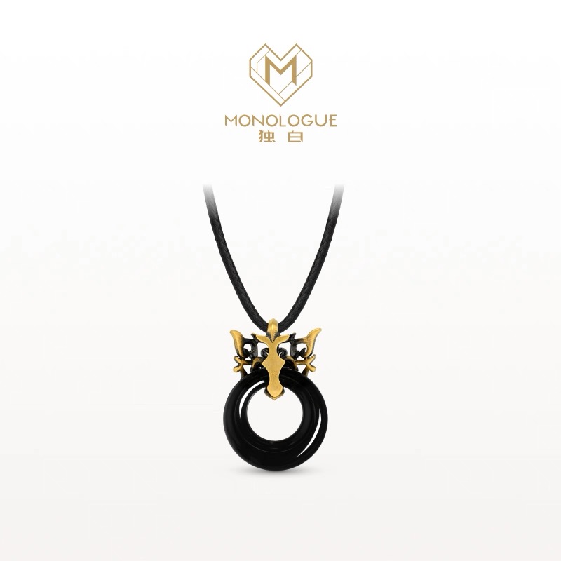 周大福独白北纬三十度复古黄金饕餮纹黑曜岩吊坠